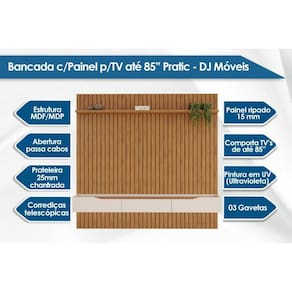 Rack Bancada c/ Painel p/ TV até 85 Pol Pratic Ripado 3 Gavetas 250x240cm Cedro/Bali - DJ Móveis