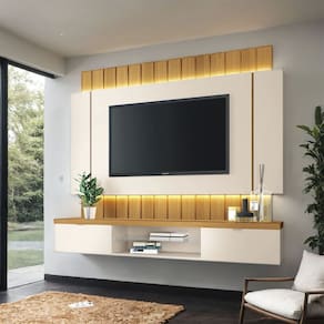 Home Painel Suspenso Katerina Para Tv 55 Polegadas 180x158-Cinamomo-Off White-EdeCasaMoveis - Branco