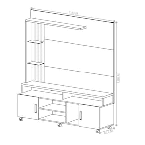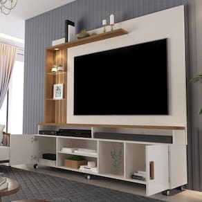 O Painel vem com 4 prateleiras de MDP para embelezar ainda mais o ambiente. Suporta Tvs de até 80 Polegadas.
