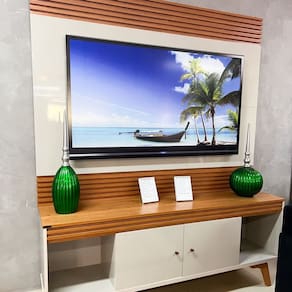 Faze parte do anúncio: 1 Painel para Sala de TV Moderno - Seviilha - Mavau Móveis 1 Rack para Sala de TV Moderno - Seviilha - Mavau Móveis Obs: Objetos decorativos não acompanham o produto.