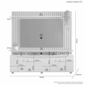 Características: ATENÇÃO PRODUTO EM MDP/MDF: Possui Espelhos: Não Possui Luminárias Led: Não Possui Detalhe Ripado: Sim Possui Tubo Metálico: Não Possui Gaveta: Não Possui Portas: 4 Portas Possui Espaço Para TV: 1685mm x 1090mm (LxA) Acompanha Suporte Para TV: Sim Necessita de Montagem: Sim
