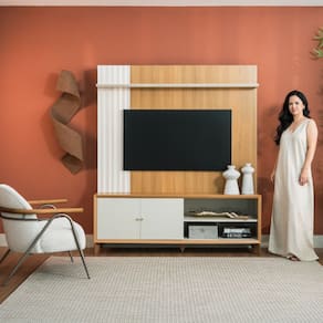 O Home Valença combina modernidade e elegância. Suportando TV até 65 polegadas conta com duas portas, espaço para eletrônico e decoração, com detalhe ondulado prateleira para decoração garantindo um ambiente harmonioso. Praticidade e um design moderno com o Home Valença.