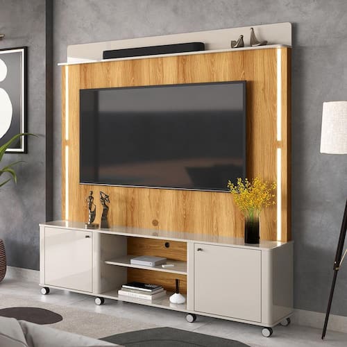 Home Para Tv Até 75 Led Ripado 3d 1,83m Off White Freijó - Lukaliam Móveis