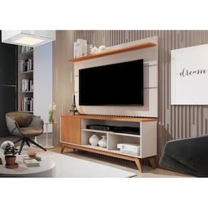 Home para TV Shaula Off White Nature O Home para TV Shaula é Desenvolvido em MDP, conta com revestimento em pintura U.V. amadeirado Touch, maior resistência e durabilidade. O Painel vem com 1 prateleira de MDP 25mm. Esse produto tem espaço para TV com 180 x 110 cm Dimensões do produto: Painel Altura: 132 cm Largura: 136 cm Comprimento: 17 cm Rack Altura: 62,5 cm Largura: 136 cm Comprimento: 36,5 cm Material Principal: MDP Informações Complementares: Rack: Gavetas: 3 Rodizíos: 6 Portas: 1 Painel: Prateleiras: 1 Itens Inclusos: - 01 Rack e 01 Painel. - Kit completo para montagem e manual de instruções. Garantia: 3 meses contra defeito de fabricação Informações Adicionais: - Fotos meramente ilustrativas do produto no ambiente. - Os objetos que ambientam as fotos não acompanham o produto; - Verificar descrição e tamanho do produto antes da compra. - Avaliar a mercadoria no ato do recebimento e recusar em caso de divergência ou avarias. - Mantenha as informações de contato e endereço de entrega atualizados para entrarmos em contato caso necessário. - Limpar com flanela ou pano macio seco, não utilizar produtos abrasivos, desengordurantes, álcool ou solvente. Não expor o produto diretamente à luz solar e à umidade. * Sugerimos a contratação de um montador profissional para a montagem do produto. Não nos responsabilizamos por avarias causadas no ato da montagem. * Não nos responsabilizamos pela montagem e desmontagem do produto no ato da entrega e devolução, assim como os custos gerados nestas situações. * A transportadora entregará o produto no andar térreo do endereço de entrega. * Não nos responsabilizamos por subir escadas, corredores e elevadores ou transporte por guincho em apartamentos.