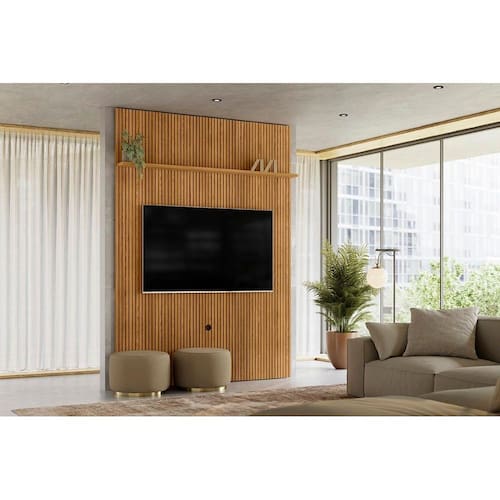MDP de12mm e MDF de 15mmO Painel Piso Teto New Interlagos é a escolha perfeita para transformar seu ambiente com estilo e funcionalidade. Fabricado com materiais de alta qualidade, ele combina design moderno e durabilidade, ideal para quem busca uma solução elegante para compor a sala de estar. O painel frisado em MDF com baixo relevo proporciona um toque de requinte e modernidade ao espaço. Suporta televisores de até 75 polegadas, proporcionando uma experiência visual imersiva.