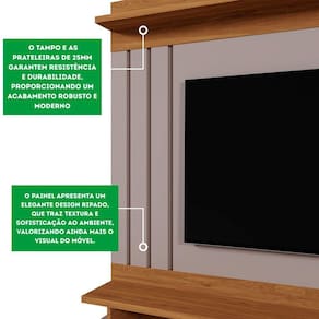 Com visual imponente e linhas contemporâneas, o Home Goiás é a escolha ideal para quem busca um móvel funcional e elegante para a sala de design foi pensado para valorizar o ambiente, oferecendo um painel robusto que comporta TVs de até 55? com total seguranç parte inferior, o rack conta com nichos abertos e portas que garantem espaço de sobra para eletrônicos, livros e objetos decorativos, mantendo tudo sempre organizado.Fabricado 100% em MDF e com acabamento UV de alta resistência, o modelo alia qualidade e sofisticação em cada detalhe. Os traços retos e o contraste entre as cores tornam o Home Goiás uma peça versátil, que combina perfeitamente com diversos estilos de decoraçãões aproximadas:Altura: 185cmLargura: 150cmProfundidade: 38,8cmObservações:- Espaço ideal para TV de até 55?- Nichos e portas para organização dos eletrônicos e objetos- Acabamento UV de alta resistência- Estrutura 100% MDF- Design moderno com linhas retas e elegantes- Ideal para salas médias e amplas- Fácil montagem com manual ilustrado