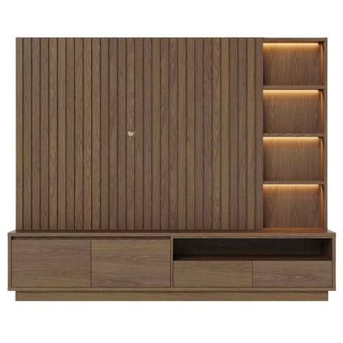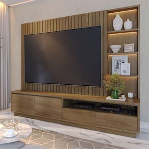 Esse Home é perfeito pois possui detalhes ripados garantindo a elegância do seu ambiente. Comporta TVs de até 82 Polegadas.