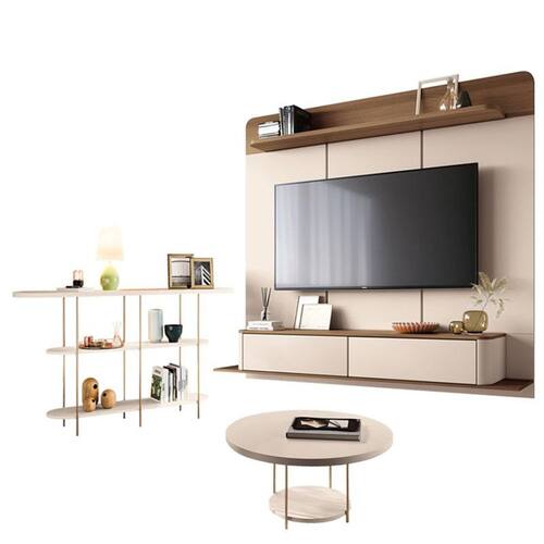 Home Suspenso Galax Castanho Off White e Aparador Infinity e Mesa Sky Off White- HB Móveis