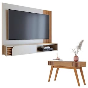 Apresentamos este conjunto de Home Suspenso Jurerê e Aparador Riviera, fabricados pela Colibri. O home possui frisos decorativos, 01 porta basculante com detalhe curvo, ripado artesanal e espaço para de ate 60 polegadas. O aparador possui 01 gaveta central com corrediças telescópicas, puxador metálico dourado fosco, ripado artesanal nas laterais, peças traseiras com acabamento possibilitando a utilização do móvel para divisão de ambientes e pés em madeira maciça. Una praticidade, funcionalidade e estilo para seu ambiente! Garanta já o seu!