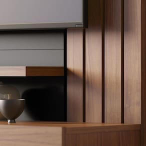 Home Suspenso Juriti 1.5 Ripado Para Tv Até 65 Noce Milano/preto - Colibri Noce Milano/preto Home Suspenso Juriti 1.5 Ripado para TV até 65 - Colibri Minimalista e clean, o Home Suspenso Juriti é um painel funcional e uma ótima opção para clientes que buscam um móvel para otimizar o espaço para TV sem abrir mão de televisores maiores, seja ele na sala de estar, home cinemas ou até mesmo em quartos. Com ripados decorativos em sua lateral, possui uma prateleira superior e outra inferior, além de duas portas basculantes com espaço interno para acomodar objetos de maneira prática e organizada. Suporta TV até 65. ESPECIFICAÇÕES: - Estrutura em MDP - Pintura UV - 2 Portas basculantes - Dobradiças metálicas - Prateleiras - Detalhe ripado - Ideal para TV até 65