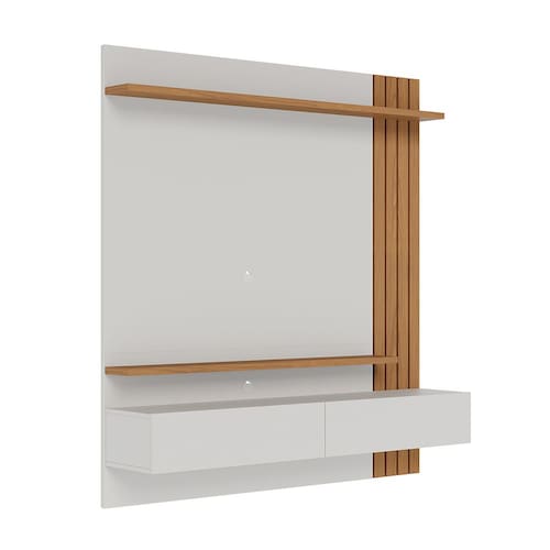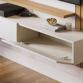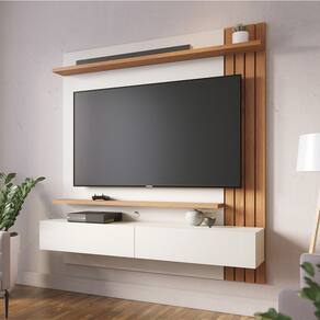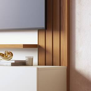 Minimalista e clean, o Home Suspenso Juriti é funcional e uma ótima opção para quem busca um móvel que otimize o espaço para TV, sem renunciar a televisores maiores, seja na sala de estar ou até mesmo em quartos. Com ripados decorativos em uma das laterais, possui uma prateleira superior e outra inferior, além de duas portas basculantes com espaço interno para acomodar objetos de maneira prática e organizada. Suporta TVs de até 65 polegadas fixada no painel.
