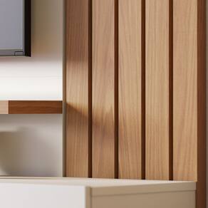 Minimalista e clean, o Home Suspenso Juriti é funcional e uma ótima opção para quem busca um móvel que otimize o espaço para TV, sem renunciar a televisores maiores, seja na sala de estar ou até mesmo em quartos. Com ripados decorativos em uma das laterais, possui uma prateleira superior e outra inferior, além de duas portas basculantes com espaço interno para acomodar objetos de maneira prática e organizada. Suporta TVs de até 65 polegadas fixada no painel.