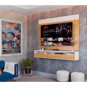 Home Suspenso Life 1.8 Nature Com Off White - Móveisaqui Perfeito para a sua sala de TV, o Home Suspenso Life 1.8 - MoveisAqui irão abrilhantar o seu espaço proporcionando charme e requinte. Ideal para o apoio do televisor, com um amplo nicho e três portas articuldas perfeitas para o apoio de eletrônicos, itens decorativos e para manter a organização do espaço.Dimensões do Produto montado-Painel:Altura: 105 cmLargura: 180 cmProfundidade: 3 cmObservações:- Amplo espaço para a sua TV;- Com passa-fio;- Ideal para Tvs de até 65 polegadas;- Pintura Ultravioleta com acabamento amadeirado na cor nature;- Pintura Ultravioleta com acabamento brilho na cor off white.Dimensões do Produto montado-Rack:Altura: 25 cmLargura: 180 cmProfundidade: 27 cmObservações:- Nicho amplo;- Três portas articuladas;- Ideal para Tvs de até 65 polegadas;- Pintura Ultravioleta com acabamento amadeirado na cor nature;- Pintura Ultravioleta com acabamento brilho na cor off white. Marca: Não Informado