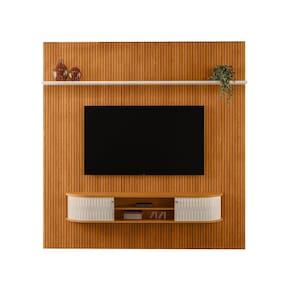 Características: Estrutura em MDP Pintura semi brilho Portas deslizantes em MDF Puxadores em Poliestireno Painel e bancada devem ser fixados na parede Tampo e base com detalhes curvos Espaço para TV até 75 Polegadas.