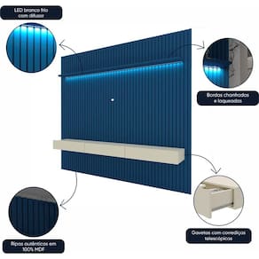 A peça possui três gavetas com corrediças telescópicas, prateleira e nicho com bordas chanfradas laqueadas e LED em luz quente com difusor, proporcionando um ambiente aconchegante e exclusivo. Com destaque para suas ripas autênticas com largura de 50mm, o Home é o móvel ideal para dar aquele realce na decoração da sua sala de estar.