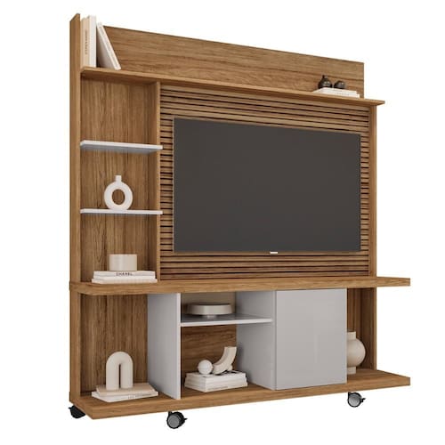 Com design moderno, estrutura robusta em MDP de 15mm e tampo emoldurado de 40mm, ele acomoda TVs de até 47" com elegância.