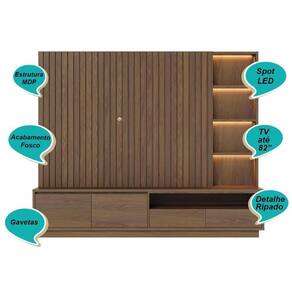 Estante Home Theater da linha Cancun fabricado pela Colibri é uma peça para adicionar design contemporâneo e funcionalidade ao seu ambiente. Produzido em MDP que garante mais durabilidade e resistência. O móvel destaca-se pelo painel ripado trazendo um toque sofisticado. Possui cinco nichos decorativos com led, uma boa opção para acomodar seus aparelhos eletrônicos e objetos. Com duas gavetas e dois gavetões são equipadas por corrediças telescópicas dando mais suavidade ao abrir e fechar as gavetas. Indicado para TVs de até 82 polegadas e com atenção aos detalhes será o destaque da sua sala de estar. Transforme sua sala e desfrute de um ambiente elegante e funcional.