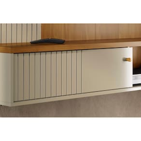 A estrutura é fabricada com painéis de MDP de 15 e 25 mm, oferecendo resistência e durabilidade. Projetada para ser fixada diretamente na parede, a bancada Aurora permite que o televisor seja instalado no painel integrado, garantindo um visual organizado e funcional. Suporta TVs de até 65"", atendendo às necessidades de diversos tamanhos de aparelhos.