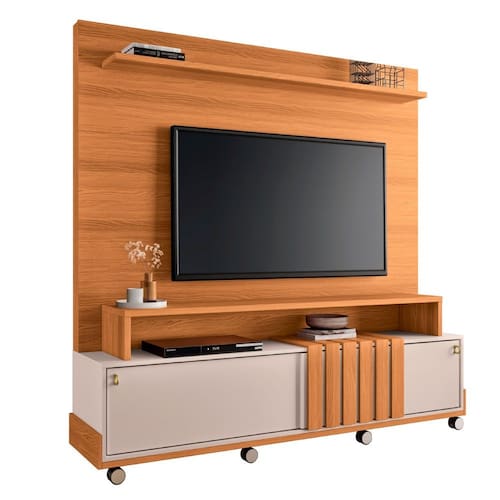 Ele comporta sua televisão perfeitamente para que você tenha uma ótima visualização de qualquer lugar que esteja sentado perfeita para TV até 65, os Rodízios cromados fazem a diferença na hora de movimentá-lo no ambiente, ele combinará perfeitamente com qualquer decoração, deixando sua sala de estar ainda mais bonita. Estrutura em MDP e MDF de 12, 15 e 25 mm oferecendo robustez e resistência ao produto com 02 Portas de correr com puxadores com acabamento dourado, que trazem um charme a mais para o produto, E não podemos deixar de falar de seus detalhes ripados, que trazem um toque a mais de modernidade e sofisticão para sua sala de estar.