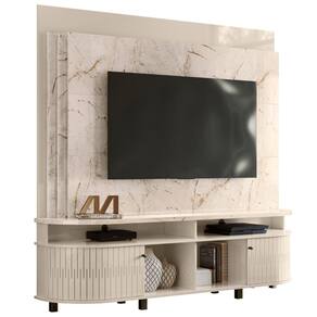 Feito em MDP 15/25mm. Contém 2 portas com detalhes curvos deslizantes e 4 nichos.