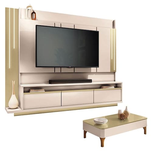 Home Theater Montane Off White Champanhe com Mesa de Centro Liz Off White Champanhe - HB Móveis