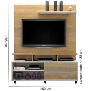 Estrutura: MDP/MDF com espessura de 15 e 25 mmAcabamento: Pintura U.VPorta: Sim, 1 porta de correrGavetas: Não,Nicho: Sim, 03 nichos para melhor decoraçãoPrateleiras: Sim, em MDP/MDFPés: Sim, Rodízios em PVCPassa cabos: Sim, para facilitar ao instalar a TVSuporta TV: Sim, de até 60” polegadasMedidas: Espaço para TV pendurada, largura de 150 cm x 95 cm de altura, Espaço para nichos para aparelhos, largura de 55 cm x 15 cm de altura x 27 cm de profundidade, Espaço para prateleira superior, largura 91 cm e profundidade 19 cmDimensões do produto Montado