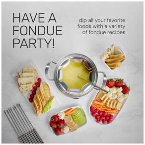CAPACIDADE Faça até 2 L 2 kg do seu fondue favorito para aniversários, festas na piscina ou qualquer evento especial para compartilhar com amigos e familiares FONDUE PARTY Torne qualquer reunião especial mergulhando frutas, legumes, pães, pretzels, asas de frango, costelas e muito mais em uma variedade de molhos de fondue. Experimente molho de búfala, molho de churrasco, rancho, chocolate, queijo, caldos e muito mais CONTROLE DE TEMPERATURA Mantenha os fondues na temperatura ideal ajustando o botão de controle de temperatura com luz azul ALÇAS COOL TOUCH Use as alças laterais de toque frio para manuseio e fácil ao mover o pote removível 8 GARFOS CODIFICADOS POR CORES Permita que os hóspedes se sirvam de fondue de chocolate decadente, deliciosos molhos de queijo e muito mais com os 8 garfos codificados por cores incluídos. Os entalhes no aro mantêm cada garfo no lugar CONSTRUÇÃO DURÁVEL A construção em aço inoxidável de alta qualidade torna esta unidade de mesa elegante e durável, adequada para qualquer peça central de festa. As peças destacáveis são laváveis na máquina de lavar louça para facilitar a limpeza Marca: Não Informado
