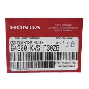 Descrição Técnica: Valor Unitário Produto: Carenagem Marca: Medidas: 28cm x 25cm x 20cm Peso: 1,000 Kg Part Number: 64300KVSF30ZB Garantia: 3 Meses Data: 26/03/2025