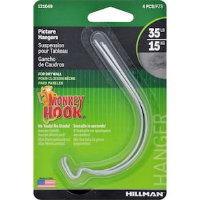 Hillman Hanging-Hardware 121049 Gancho de macaco 16 kg Pacote econômico de 4, 4, zinco, contagem
