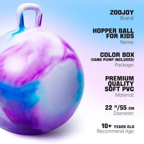 Seu filho tem muita energia? Você prefere que eles passem menos tempo no iPad? As bolas de salto são a melhor maneira de as crianças se exercitarem sem que elas saibam. O lindo padrão de dinossauro pode rapidamente chamar a atenção das crianças . Benefício para crianças Saltar em um salto moderno é um exercício surpreendentemente bom. Ele fornece exercícios cardiovasculares e fortalece os músculos centrais das crianças, pernas e muito mais. Ajude-os a se manterem ativos e a desenvolver a força central, o que é vital para estimular as habilidades motoras grossas e as habilidades motoras finas. Brinquedos internos e externos para crianças As crianças podem pular na bola da caçamba na sala sem barulho ou no quintal quando o sol está ensolarado. Ela também é adequada para jogos escolares infantis. Os pais também podem carregá-lo para viagens curtas para crianças devido ao seu peso leve. Divirta-se com a família ou amigos! Escolha as bolas de funil de tamanhos diferentes, comece um divertido jogo em família ou participe de um jogo de festa, pule nele junto com amigos, irmãos e irmãs, aproveite o tempo juntos. Mantenha a energia da criança fora! Montar bolas de funil pode manter as crianças ativas e manter os exercícios, ajudando as crianças a desenvolver equilíbrio e coordenação ocular. Saltar sobre ele pode trazer muita diversão para as crianças, fazer com que elas passem momentos entediantes mesmo na chuva . Informações sobre o produto: Tamanho: 22 polegadas/55 cm Peso: 0,8 kg Idade: 10 anos ou mais Peso máximo sustentável de 220 libras ou 100 kg. - Bola colorida ZOOJOY Clouds Hopper: a combinação rica de cores torna a bola de salto mais atraente. 22 pol/55 cm de diâmetro, peso limite máximo de 100 kg/220 libras. O lindo padrão de nuvem atrai facilmente a atenção das crianças e foi especialmente projetado para crianças com mais de 10 anos. Bola Hopper segura e durável: usamos materiais espessos e de alta qualidade que são saltitantes, duráveis e fortes. A alça de laço único tem alças texturizadas e a parte inferior é antiderrapante para as crianças segurarem com firmeza, garantindo um maior nível de segurança e proteção ao pular - Fitness e entretenimento para crianças pequenas: pular em um hippity hop é um exercício surpreendentemente bom que pode ajudar as crianças a gastar energia enquanto ficam em casa, desenvolver equilíbrio e coordenação e se divertir. As bolas Hopper são brinquedos esportivos perfeitos para crianças - Como inflar: ajuste facilmente o nível de inflação para corresponder à altura do seu filho para obter o máximo conforto. Primeiro, remova o bujão de ar branco do orifício de ventilação. Em seguida, bombeie o ar manualmente até atingir o nível de inflação desejado. Finalmente, retire a bomba de ar e insira rapidamente o plugue de ar branco. O processo leva apenas cerca de 3 minutos - Brinquedos para ambientes externos e internos, ótimo presente de Natal para crianças pequenas: este brinquedo pode ser utilizado tanto em ambientes internos quanto externos. As crianças podem pular tranquilamente no quarto ou se divertir no quintal em dias ensolarados. Ele vem com uma linda caixa, o que o torna um ótimo presente para crianças