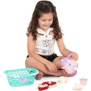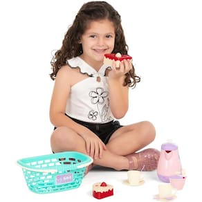 A Hora do Café traz tudo o que os pequenos precisam para criar momentos deliciosos de faz de conta. Aqui temos um kit de café completo com xícaras, pratinhos, colheres, açucareiro e um bule que pra manter o café quentinho o dia todo, garantindo a experiência perfeita para servir e compartilhar. E, claro, não poderia faltar um bolo delicioso recém saído do forninho para deixar tudo ainda mais gostoso! Tudo isso pode ser organizado numa cestinha charmosa, facilitando o transporte e garantindo que a brincadeira possa acontecer em qualquer lugar. Contém: 1 Cesta com alças 2 Xícaras 2 Pratos 3 Colheres 1 Açucareiro 1 Bule 2 Fatias de bolo
