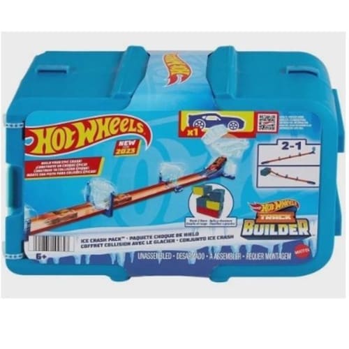 crie novas possibilidades de corrida com o conjunto hot wheels track builder ice crash pack. O playset hot wheels ice crash inclui tudo o que você precisa para uma diversão superlegal. Coloque seu carro no lançador e pressione o botão para enviá-lo voando pela pista. Acelere através dos obstáculos gelados e suba a rampa antes de bater na parede de gelo. O conjunto vem em um contêiner modular que pode ser incorporado a qualquer construção e pode ser utilizado para armazenar a pista entre as construções. Este conjunto se conecta ao restante dos conjuntos track builder para infinitas possibilidades. Inclui: playset track builder com 1 carro hot wheels, lançador, nadadeiras de gelo, barreira de parede de gelo e 4 peças de pista reta. Tudo pode ser armazenado de volta na caixa de armazenamento incluída. Reprodução de faixa 2 em 1. Empilhe e armazene seus playsets do track builder. Código inmetro: 005380/2021