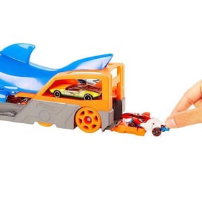 A partir dos três anos, as crianças começam a ser mais independentes, por isso, é importante dar a elas brinquedos que estimulam a criatividade, o brincar junto, o faz de conta e joguinhos para trabalhar o raciocínio lógico e imaginação é uma ótima opção para ajudá-los na socialização. Com o caminhão de brinquedo Guincho Tubarão Hot Wheels da Mattel a criançada vai se divertir de montão! Esse caminhão recria o icônico Shark Bite Hot Wheels como um caminhão totalmente novo e incrível. Basta empurrar o caminhão para ativar um mecanismo especial de mordida que faz o tubarão agarrar os carros direto com suas poderosas mandíbulas para engoli-los e guardá-los na barriga. E na hora de descarregar? Há uma rampa de saída na parte de trás para facilitar o acesso. O carro Guincho Tubarão tem movimento roda livre e vem com um carro Hot Wheels em escala de 1:64 e comporta até mais quatro veículos. Ean: 887961925197