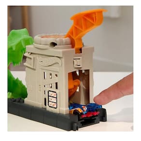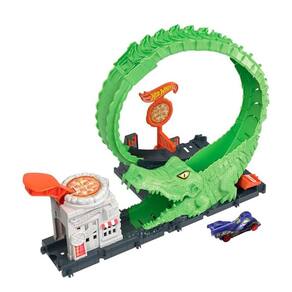 Um crocodilo invadiu a pizzaria Hot Wheels para devorar carros, a menos que as crianças possam detê-lo com suas incríveis manobras. Reposicione a cauda gigante do crocodilo para criar um loop ou hélice para uma brincadeira versátil na pista. Quando as crianças lançam seus carros, elas podem derrubar o crocodilo e correr em direção a novas aventuras. Inclui um carro Hot Wheels que pode se conectar a outros conjuntos. Conjuntos adicionais vendidos separadamente. As cores e as decorações podem variar.