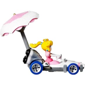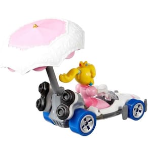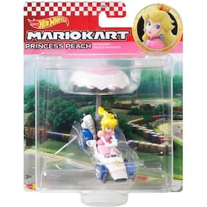 As crianças podem escolher seus personagens favoritos de Mario Kart e acelerar para corridas e acrobacias loucas com um veículo Hot Wheels fundido em escala 1:64 com um planador, assim como nos videogames!