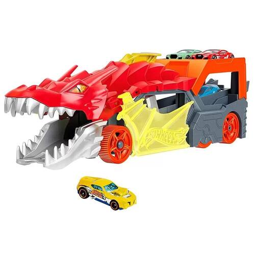 O Hot Wheels City Reboque de Dragão oferece o calor com recursos super legais que as crianças vão adorar. Em vez de disparar chamas pela boca, este dragão estiloso atira em veículos Hot Wheels®! As crianças carregam três carros nele e, em seguida, acionam o lançador para enviar veículos em alta velocidade para diferentes aventuras. Os conectores de esteira na frente e na traseira da fera permitem que as crianças prendam a esteira Hot Wheels, adicionando a uma construção existente ou para iniciar uma nova.Características:O Reboque de Dragão Wheels vem com um (1) carro Hot Wheels em escala de 1:64 e comporta até mais cinco carrinhos (vendidos separadamente) Ean: 887961916386