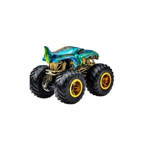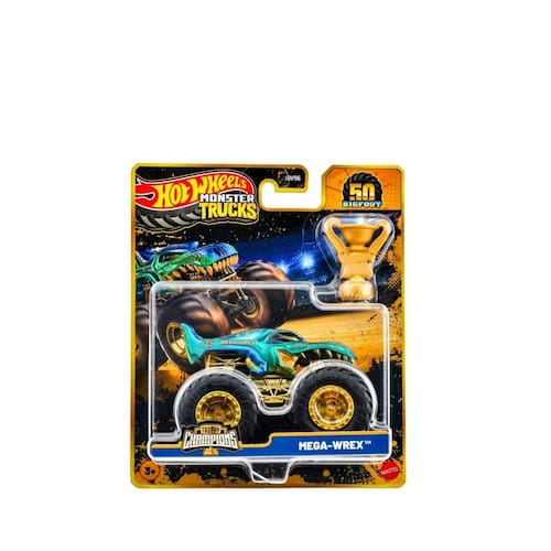 Cada veiculo Die-cast em escala 1:64 apresenta um personagem favorito dos fãs do Monster Trucks com características premium, como decoração e detalhes dourados Inclui um acessório de troféu do campeonato Hot Wheels Monster Trucks Live