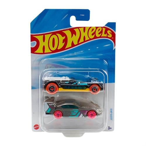 O pacote inclui dois carrinhos Hot Wheels.