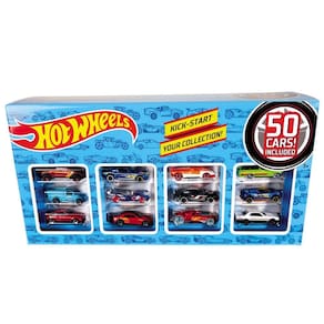 Este pacote inclui uma grande carga de diversão com 50 veículos Hot Wheels que estão incluídos.