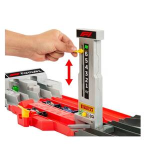 Você pode recriar a emoção das corridas do Grande Prêmio de Fórmula 1 com este conjunto de pista da Hot Wheels. No modo de corrida, o contador de voltas acompanha os carros enquanto eles passam pelo acelerador de três pistas e aceleram em curvas dinâmicas e mudanças de elevação, exatamente como nas ruas da cidade real. As crianças podem acionar o desvio interativo DRS que permite que os veículos ultrapassem o líder em uma curva, o vencedor será o primeiro a chegar ao portão de chegada. No modo infinito, corra continuamente com os três carros F1 die-cast incluídos, ajustando manualmente os desviadores para aumentar a competição.