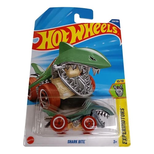 Com um design único e divertido, o Shark Bite é um modelo que chama atenção pela sua forma inusitada, com a parte frontal imitando a mandíbula de um tubarão. Ideal para quem adora miniaturas criativas e colecionáveis, este modelo pertence à linha Experimotors e é uma peça imperdível para a sua coleção Hot Wheels.