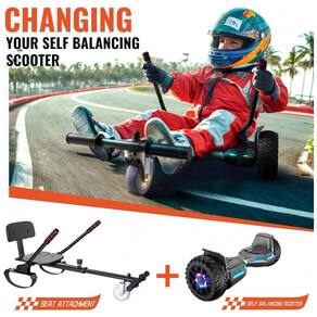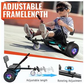 Transforme o hoverboard em um kart seguro e divertido. O assento expansível proporciona maior conforto e agilidade, com comprimento ajustável de 72 cm a 85 cm, ideal para crianças e adultos.