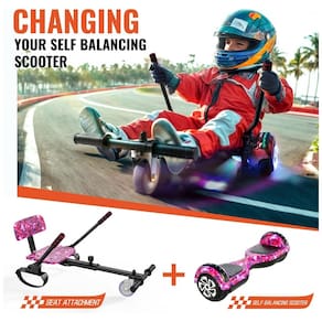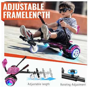 Transforme o hoverboard em um kart seguro e confortável. O assento expansível proporciona conforto e agilidade, com comprimento ajustável de 72 cm a 85 cm, adequado para crianças e adultos, aumentando a diversão e a praticidade do uso.