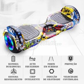 Hoverboard Infantil Skate Elétrico Arte Urbana Led Grafite