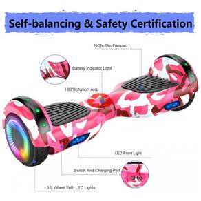 O Hoverboard LIEAGLE 6,5" na exclusiva cor Rosa Camuflado com Go Kart combina tecnologia, diversão e segurança em um design inovador e sofisticado. Certificado UL2272, atende aos mais rigorosos padrões de segurança, garantindo proteção total durante o uso. Seu sistema de autoequilíbrio torna o controle fácil e estável, ideal para iniciantes e amadores. Equipado com rodas de LED coloridas, proporciona uma experiência visual incrível, especialmente à noite, enquanto o alto-falante Bluetooth integrado permite ouvir músicas ou livros diretamente do hoverboard, sem fones. O modelo acompanha um assento de Kart confortável, ajustável entre 72 cm e 85 cm, permitindo manobras como curvas, giros de 360 graus e condução em linha reta com máxima segurança e diversão. Compacto, resistente e estiloso, é perfeito para momentos de lazer e como presente para crianças e adultos que buscam entretenimento e mobilidade com estilo.