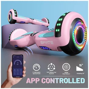 O Hoverboard SIMATE possui uma bateria de longa duração e um sistema de controle de autoequilíbrio, com motores de 300W e pneus todo-terreno. Adequado para crianças e adultos, meninas e meninos, é fácil de aprender e usar. Com alto-falantes Bluetooth integrados, luzes de LED brilhantes e rodas piscantes para uma viagem mais segura e divertida. Baixe nosso aplicativo exclusivo XsCar para um controle abrangente sobre seu hoverboard. Desligue, ajuste as luzes, monitore a velocidade e a bateria, defina modos de velocidade e muito mais. Com rodas de borracha sólida de 6,5", estrutura de alumínio resistente, base antiderrapante, longa vida útil da bateria, velocidade máxima de 10 km/h, 3 modos de velocidade ajustáveis, alcance máximo de 11 km e carga máxima de 100 kg. Ideal para crianças, adultos, meninas, meninos, adequado para atividades diárias e excelente presente para aniversários e festivais.
