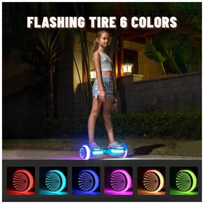 Projetado para Todos! O HoverboardSIMATE vem com um sistema de controle auto balanceamento, perfeito para todas as idades: crianças, adultos, adolescentes, meninas, meninos. Fácil de aprender e usar. Todos podem dirigir! Música via Bluetooth: O Hoverboard SIMATE possui um alto-falante Bluetooth embutido que permite conectar seu smartphone para tocar suas músicas ou livros favoritos, tornando seu passeio mais divertido. Luzes de LED Coloridas: O Hoverboard possui luzes de LED vibrantes e únicas. 6 cores diferentes piscam aleatoriamente, deixando você super estiloso ao andar. Os indicadores de LED facilitam a monitoração da vida da bateria e status do Hoverboard, oferecendo tranquilidade durante sua próxima aventura. Longa Vida Útil da Bateria: O Hoverboard SIMATE atinge uma velocidade máxima de 13,7 km/h e uma autonomia máxima de 13,7 km com dois potentes motores duplos de 250W. Subida rápida em inclinações de até 15 graus para um passeio suave. Rodas de borracha sólida de 6,5 polegadas, estrutura resistente de alumínio, base antiderrapante e carga máxima de 100 kg. Certificação de Segurança UL2272: O Hoverboard elétrico SIMATE passou na Certificação de Segurança UL2272, cumprindo todas as regulações de segurança dos EUA. Curta o passeio sem se preocupar com problemas de bateria ou carregamento. Presente Perfeito: O Hoverboard SIMATE é um presente ideal para crianças, adultos, meninas, meninos e todas as idades. Adequado para atividades do dia a dia, é um ótimo presente para ocasiões como Halloween, Natal, Ação de Graças e aniversários.