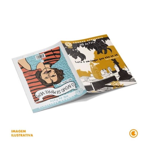 Uma parceria entre os selos HQ para Todos e HQ de Fato, da Conrad Editora e Revista O Grito! respectivamente, o livro traz duas histórias dedicadas ao Jornalismo em Quadrinhos e publicadas originalmente de forma digital no site da revista, que chegam agora em versão impressa. Em Luto é um lugar que não se vê, de Gabriela Güllich, temos uma reportagem sensível sobre o luto e tudo que o envolve. O cemitério é muito associado à morte, mas é também um lugar de vida. Em nossa procura por eternizar quem já se foi, buscamos uma representação palpável – lápides, estátuas, enfeites – para preencher a saudade. A história que a história não conta. Já em O Novo Sempre Vem, de Carol Ito, você encontra um novo olhar sobre a relevância e o impacto cultural de Belchior, um dos maiores artistas da música brasileira, morto em 2017. Ali Vannick, sua filha, trilha os passos do pai para manter acesa a poética única do cantor para além do tempo.