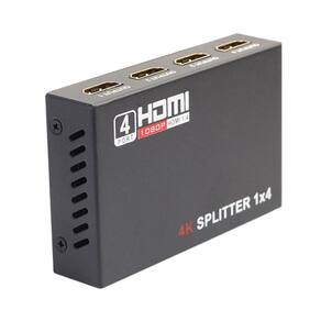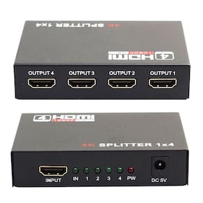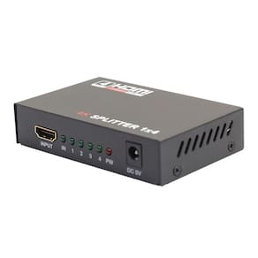 Divisor hdmi 1x4 é possível ligar equipamentos como: pc, bluray, tv à cabo, video games e etc, e duplicar a mesma imagem para 4 televisores ou projetores. Distribui uma entrada em 4 saídas hdmi idênticas, e sincronizadas. Tem a capacidade de buffer amplificando com alcance de transmissão de sinal hdmi até 15 metros fácil de usar plug and play aplicação: switch / splitter de fontes de video digital 2/4 dvi ou de audio digital hdmi tela digital, monitoes de tela plana hdmi, hdtv players de dvd, de satelite, sel top boxes projetores digitais de audio e video outros dispositivos habilitados para hdmi caracteristicas: 1 entrada e saida 2/4 splitter aprovado pelo hdmi attached lab suporta totalmente hdtv 1080p compativel com hdcp suporte dts doby , 7. 1 canais de audio conectores banhados plug and play função amplificador e equalizador para aumentar o cabo hdmi o pacote inclui: 1 divisor hdmi 1 fonte de alimentação 5v dc 1 manual de instruções