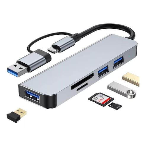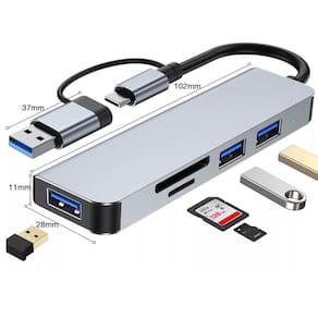 Hub Multifuncional Extensor Type- C 5 Em 2 Pega Cartão Hub Multifuncional Extensor Type-C 5 em 2 com Leitor de Cartão O Hub Type-C 5 em 2 é um acessório indispensável para quem busca mais conectividade e praticidade no dia a dia. Com um design compacto e sofisticado, ele expande as portas do seu dispositivo, permitindo conectar diversos acessórios e periféricos com rapidez e eficiência. Principais Características: 5 em 2 - Expansão Completa: Permite conectar múltiplos dispositivos ao mesmo tempo, facilitando a transferência de arquivos, carregamento e espelhamento de tela. Duas Entradas Type-C: Compatíveis com notebooks, tablets e smartphones que possuem portas USB-C. Leitor de Cartão SD e MicroSD: Ideal para fotógrafos, editores e criadores de conteúdo, permitindo a rápida transferência de fotos e vídeos. Portas USB 3.0 de Alta Velocidade: Taxa de transferência rápida para pen drives, HDs externos, teclados, mouses e outros periféricos. Material Premium: Fabricado em liga de alumínio, garantindo maior durabilidade e dissipação de calor eficiente. Plug & Play: Não requer instalação de drivers, basta conectar e usar. Design Compacto e Portátil: Ideal para levar para qualquer lugar sem ocupar espaço na bolsa ou mochila. Portas Disponíveis: 2x Entradas Type-C - Conexão segura e compatível com diversos dispositivos. 2x Portas USB 3.0 - Transferência rápida de arquivos e suporte a periféricos. 1x Leitor de Cartão SD - Para cartões de memória de câmeras, drones e outros dispositivos. 1x Leitor de Cartão MicroSD - Para cartões de smartphones e outros gadgets. Especificações Técnicas: Conector: USB Type-C Compatibilidade: Windows, macOS, Android, iPadOS Material: Liga de alumínio resistente Velocidade de Transferência: Até 5Gbps USB 3.0 Dimensões: Compacto e leve